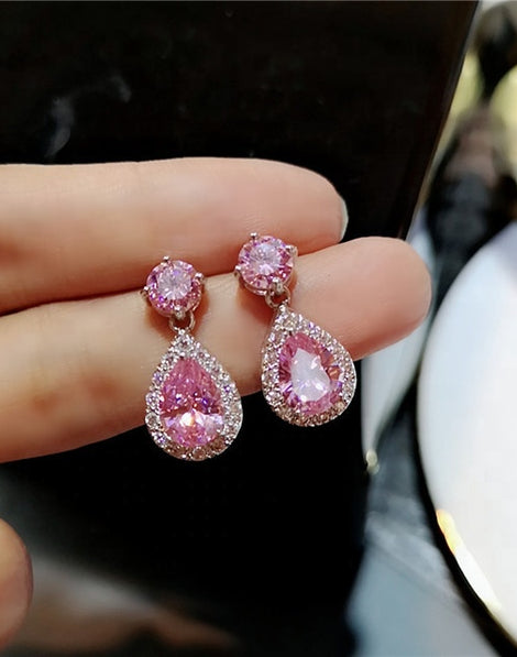 Buy our Classic Pink Water Drop Cubic Zircon Sterling Silver Drop Earrings made of Trendy CZ Crystal and Big Zircon Stone. These are